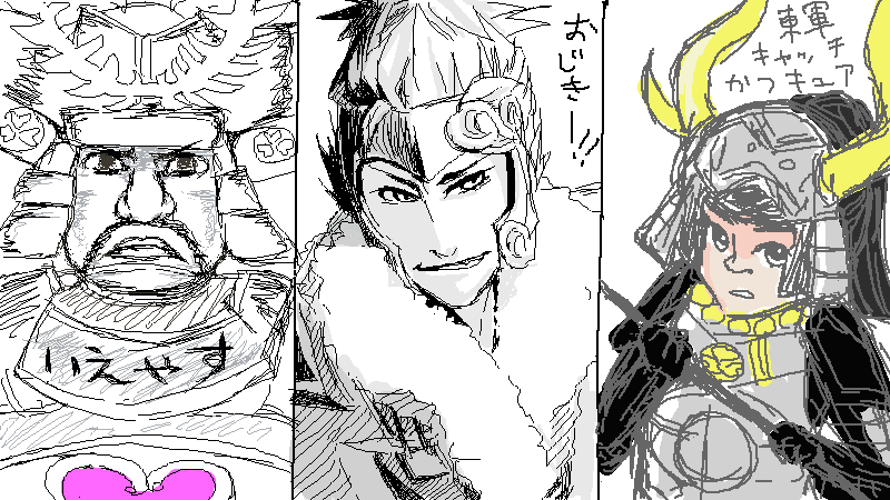次にむさいの描こうということで、無双おっさんキャラ+利家の中からあみだくじで決定